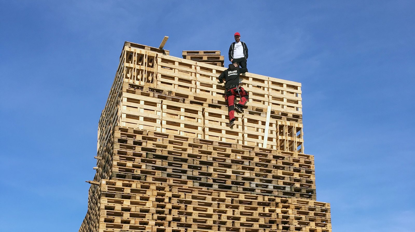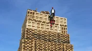 Norwegens Traumfjorde - Der Geiranger und seine NachbarnHoch hinaus für das schönste Mittsommernachtsfeuer: In diesem Jahr soll der Turm aus alten Holzpaletten der Fischerei unbedingt 40 Meter überragen.Bild: © NDR/doclights GmbH/Ralf Biehler