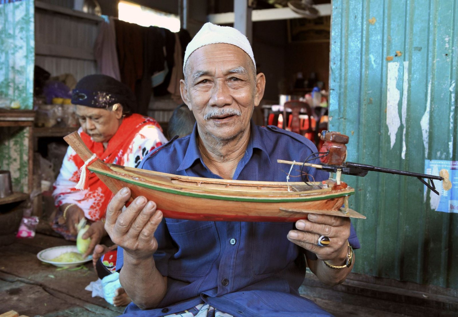 Thailand: In der AndamanenseeNDR Fernsehen MARETV, "Thailand", am Donnerstag (02.02.12) um 21:00 Uhr. Zeitvertreib in Ko Phanyi in Südthailand: Kheb schnitzt Langschwanzboote in Miniaturformat.Bild: © ZDF und NDR/nonfictionplanet/Florian Melzer