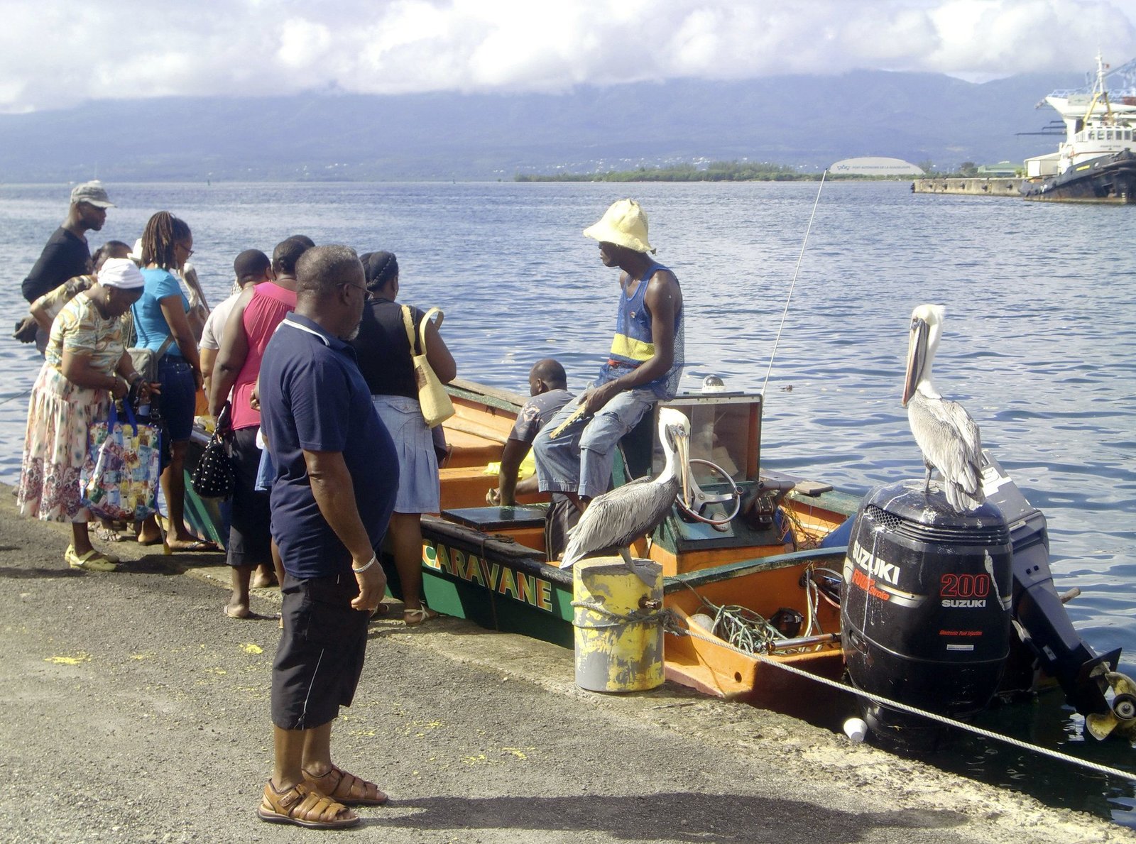 Die Karibikinsel GuadeloupeNDR Fernsehen MARETV, "Die Karibikinsel Guadeloupe", am Donnerstag (19.01.12) um 20:15 Uhr. Verkauf direkt am Fischerboot im Hafen von Pointe-à-Pitre auf der Karibikinsel Guadeloupe. Auch die Pelikane hoffen auf einen LeckerbissenBild: © NDR/nonfictionplanet/Ulrich Patzwahl