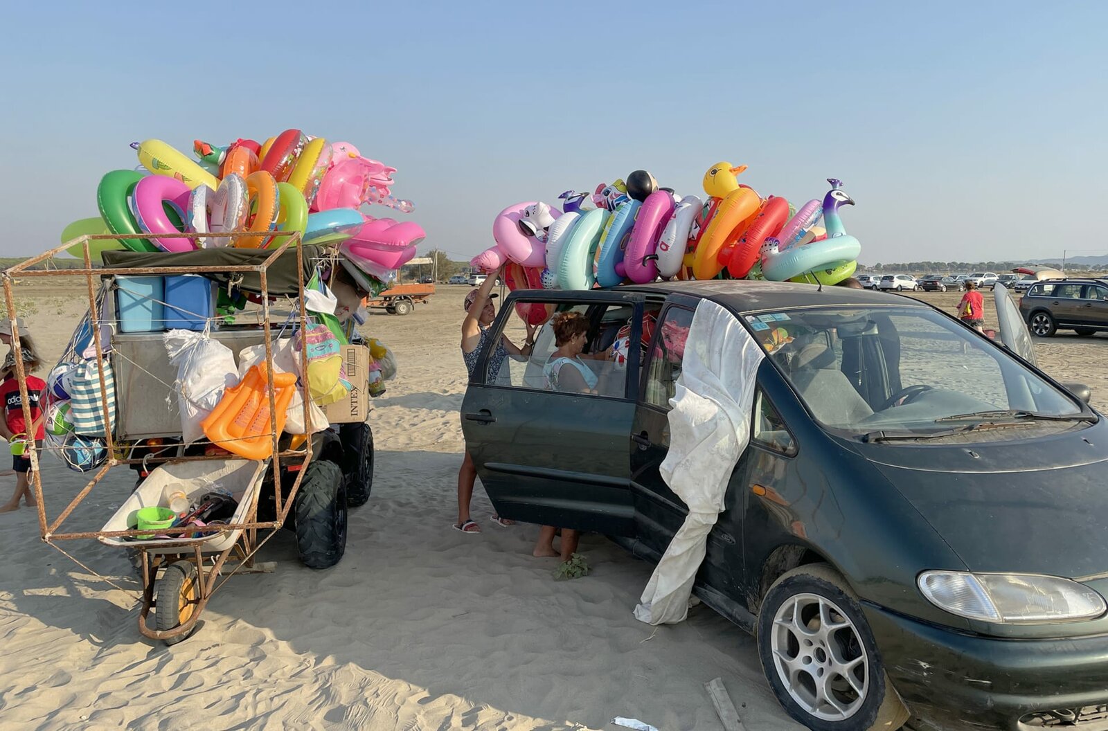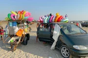 Albaniens Adria - Lagunen zwischen Bergen und MeerKnallbunt statt Sozialismus: Ein ganzes Heer fliegender Händler verkauft im neuen Albanien farbenprächtige Schwimmtiere am Strand.Bild: © NDR/nonfictionplanet/Steffen Schneider