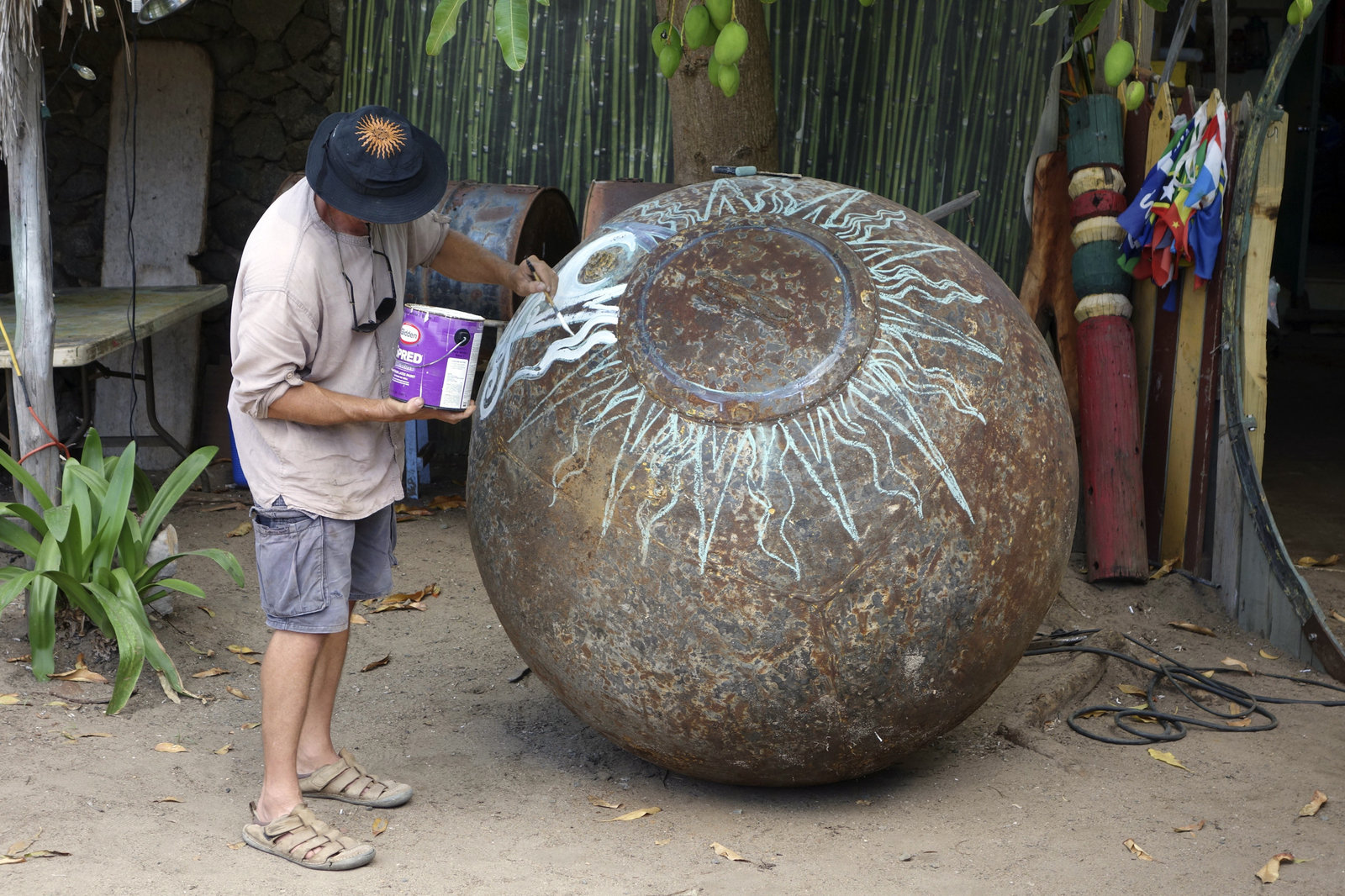 Die britischen Jungferninseln - Karibik, Krone, KrabbenrennenAusrangierte Bojen oder Mooring Tonnen dienen Aragorn Dick-Read als Ausgangsmaterial für gigantische Feuerschalen. Weitere Fotos erhalten Sie auf Anfrage.Bild: © NDR/doclights/Steffen Schneider