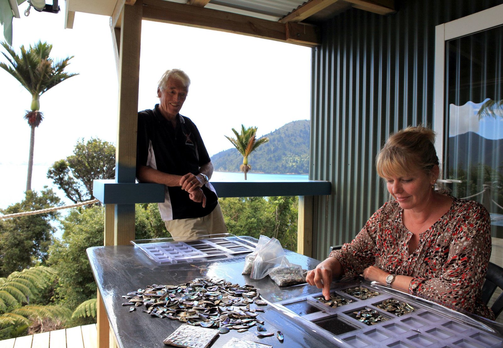 Sommer in Neuseeland - Die Marlborough SoundsHier lässt es sich leben: Julie und Dale haben ihr Baugeschäft in Sydney aufgegeben und stellen nun an den neuseeländischen Marlborough Sounds Muschelfliesen her.Bild: © NDR/NDR/nonfictionplanet/Steffen Schneider