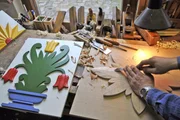 Auf dem Darß - Zwischen Ostseee und BoddenDa fliegen die Sägespäne: Die Verzierung einer "Darßer Tür" entsteht in mühsamer Handarbeit.Bild: © ZDF und NDR/nonfictionplanet/René Roloff