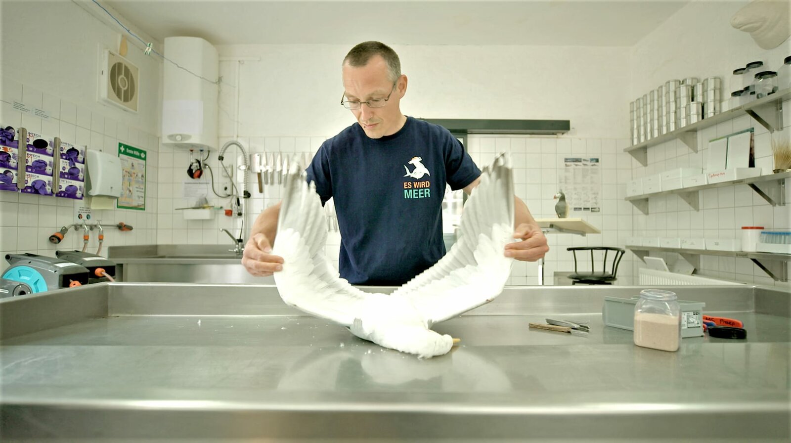 Die Hansestadt Stralsund - Welterbe an der MeerengeMöglichst lebensecht präparieren für das neue Meeresmuseum: Das ist die Kunst von Malte Seehausen – stundenlang hat der Experte dafür die Flugbewegungen der Möwen beobachtet. (Bild: © NDR/nonfictionplanet/Eddy Zimmermann