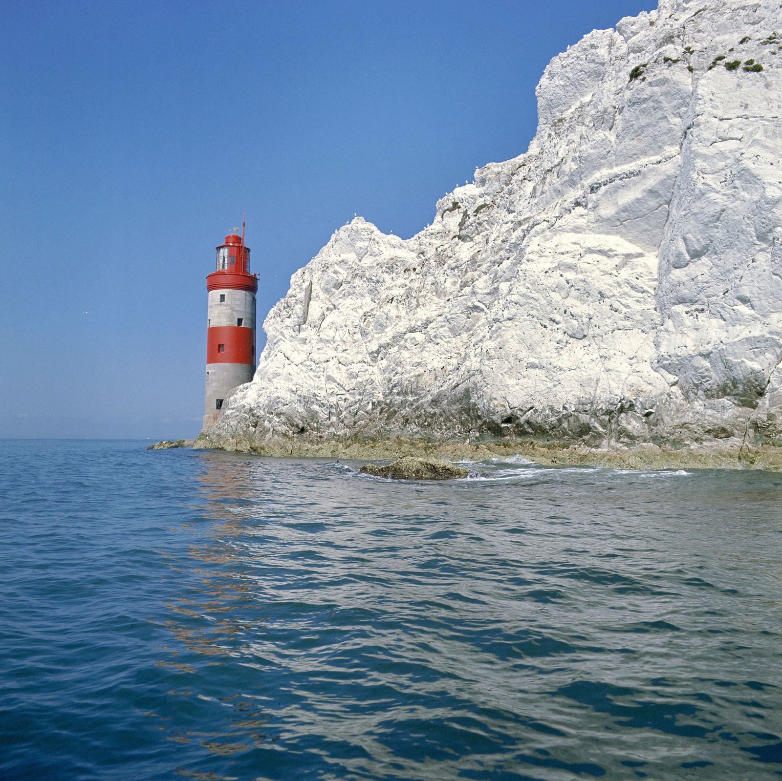 Englands Sommerfrische - Die Isle of WightDie felsige Küste von Englands Isle of Wight ist schon manchem Schiff zum Verhängnis geworden: Der Leuchtturm an der Westseite soll das Schlimmste verhindern.Bild: © ZDF und NDR/nonfictionplanet/Visit Britain