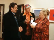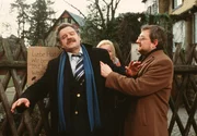 Marga Engel gibt nicht auf01.05) um 10:30 Uhr im Ersten. Der Kampf mit Marga (Marianne Sägebrecht) um die alte Villa schlägt Ohrmann (Gunter Berger, li.) auf die Nerven - Anwalt Hähnel (Maximilian Krückl) leistet erste Hilfe.Bild: © ARD Degeto/ARD/Degeto/Sandor Domonkos
