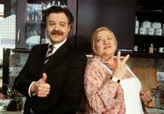 Marga Engel gibt nicht aufKann Marga (Marianne Sägebrecht) den Baulöwen Ohrmann (Gunter Berger) mit ihrer Kochkunst auf ihre Seite ziehen?Bild: © rbb/Degeto/Sandor Domonkos