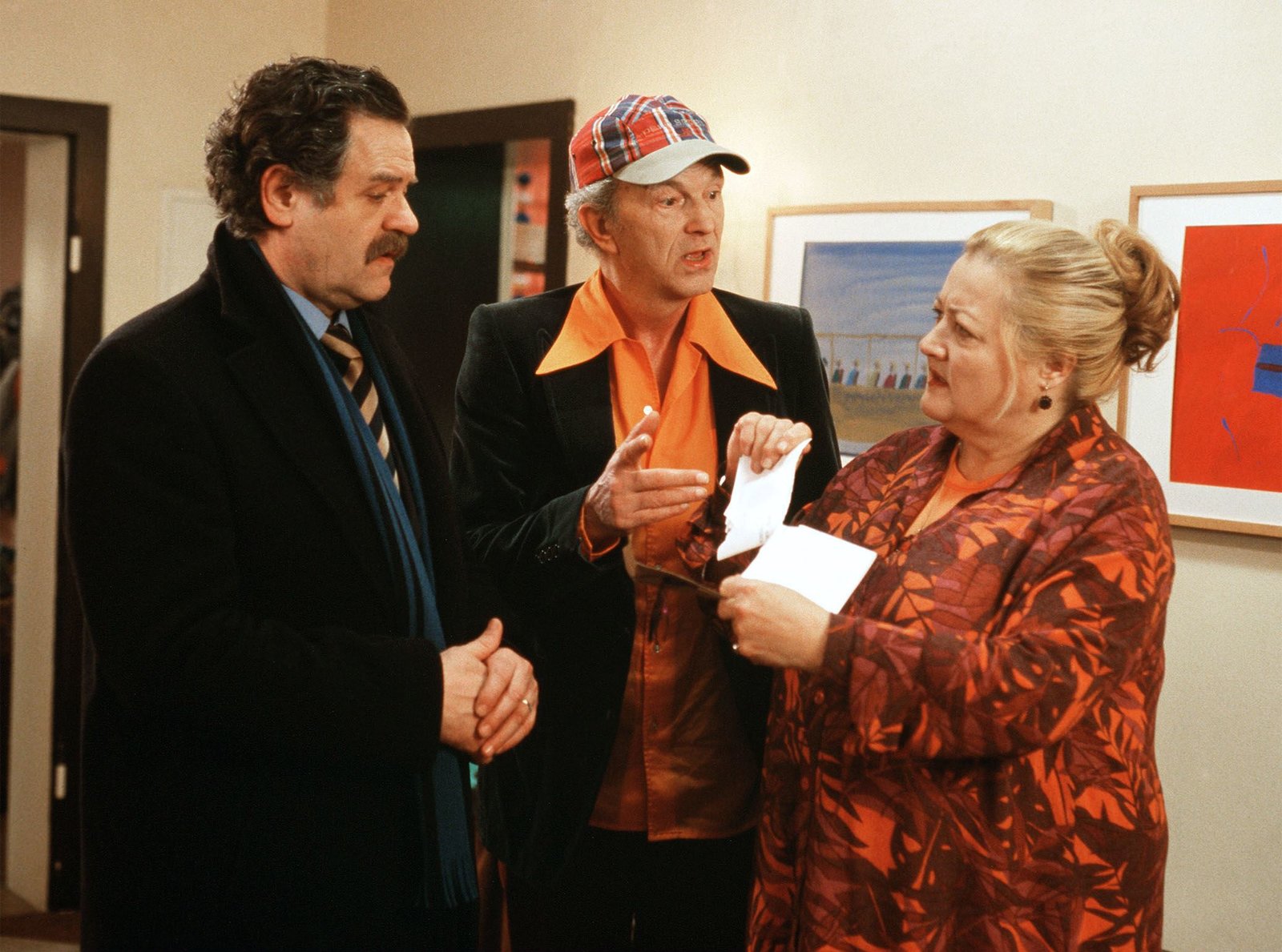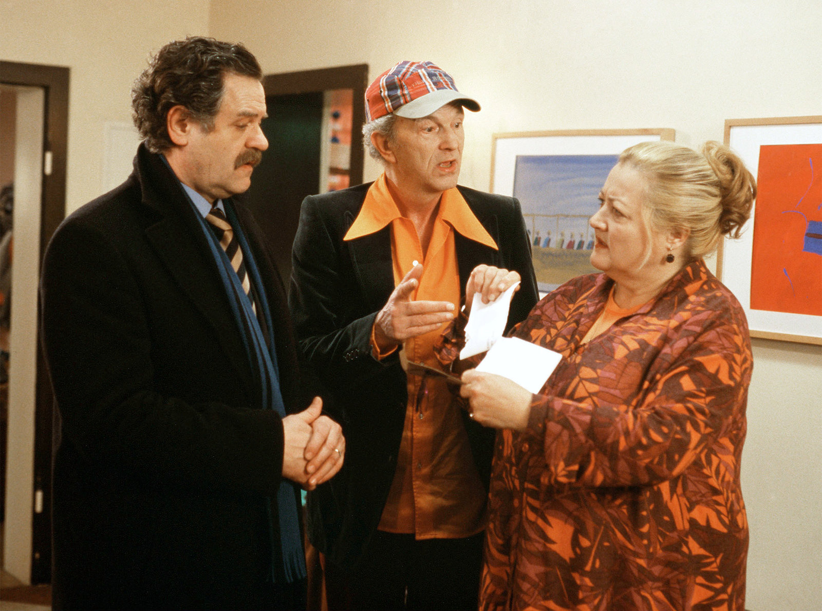Marga Engel gibt nicht aufHenning (Michael Gwisdek, Mitte) traut seinen Augen kaum, als die empörte Marga (Marianne Sägebrecht) dem Baulöwen Ohrmann (Gunter Berger) die Leviten liest.Bild: © ARD Degeto/ARD/Degeto/Sandor Domonkos