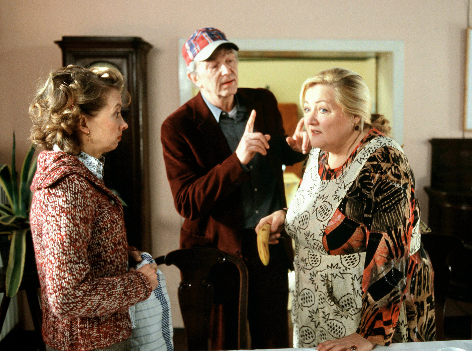 Marga Engel gibt nicht aufFreund und Anwalt Henning (Michael Gwisdek) warnt Marga (Marianne Sägebrecht, re.) und Emma (Anna Böttcher) vor voreiligen Schritten.Bild: © ZDF und ARD/Degeto/Sandor Domonkos