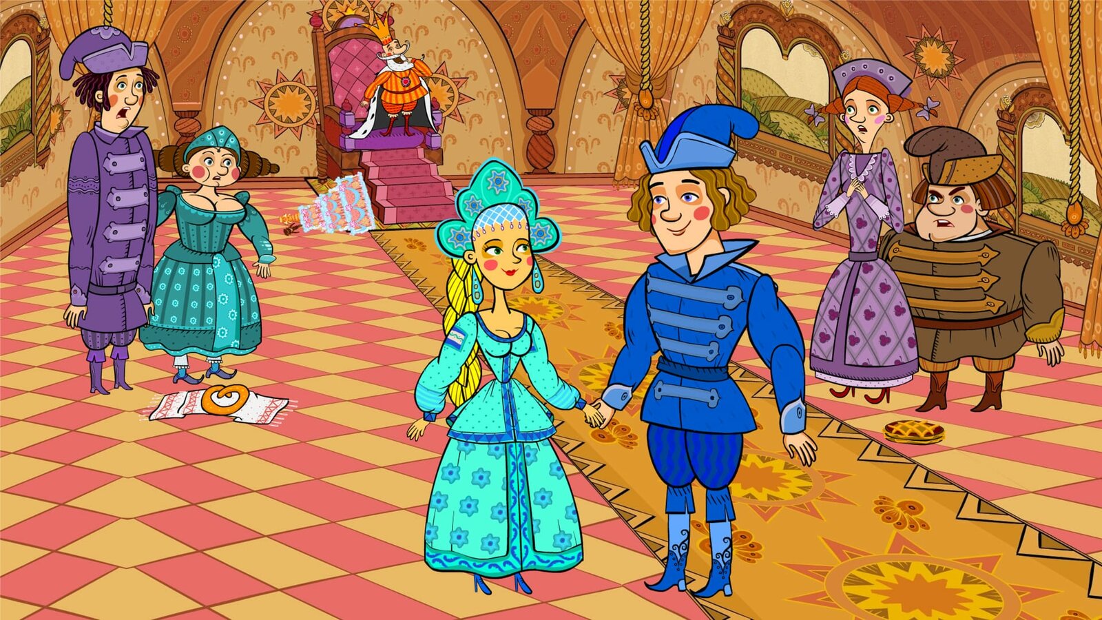 BlaubartVäterchen Frost schenkt der Stieftochter drei Schimmel, einen Weihnachtsbaum, einen Schlitten und einen Kleiderschrank voller hübscher neuer Kleider.Bild: © KiKA/Animaccord LTD 2008
