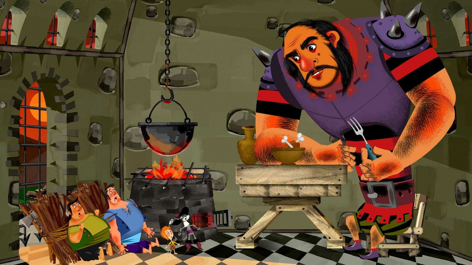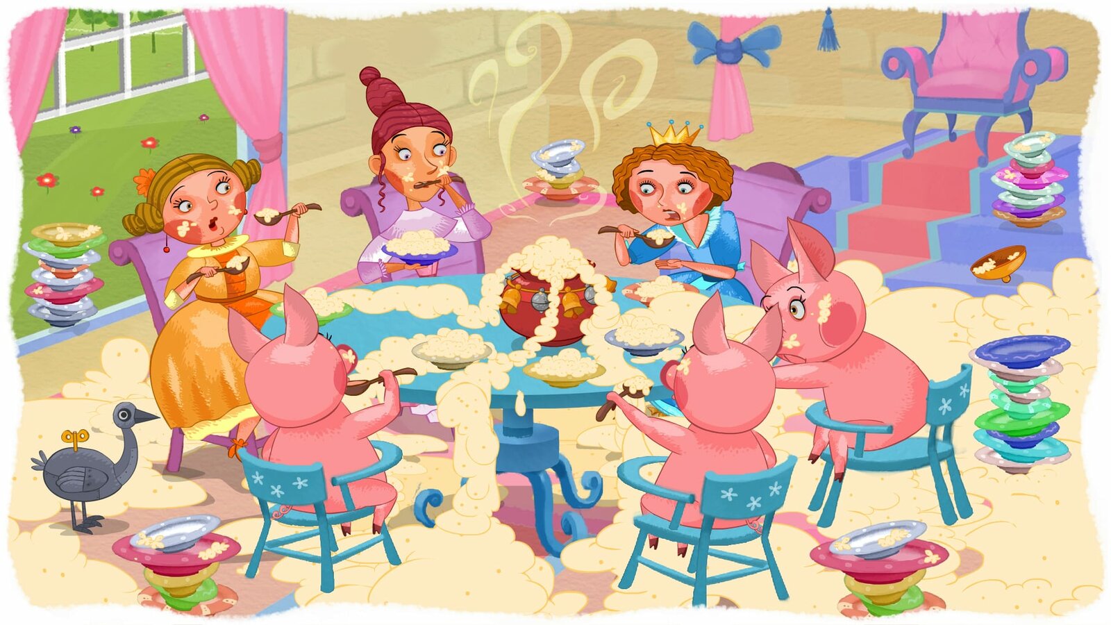 Der SchweinehirtDie Prinzessin isst mit ihren Hofdamen und den Schweinen den Haferbrei.Bild: © KiKA