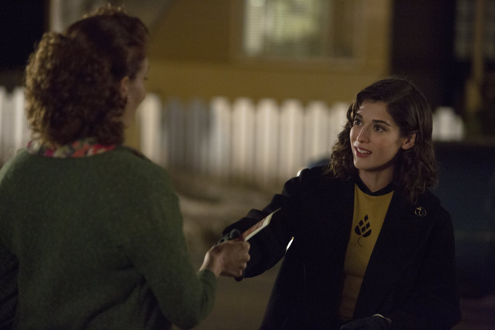 Auf frischer Tat ertapptVirginia (Lizzy Caplan) muss immer noch Diätpillen verkaufen und versucht es bei ihrer Nachbarin Loraine (Rebekah Ward, l.).Bild: © ZDF und Michael Desmond