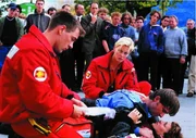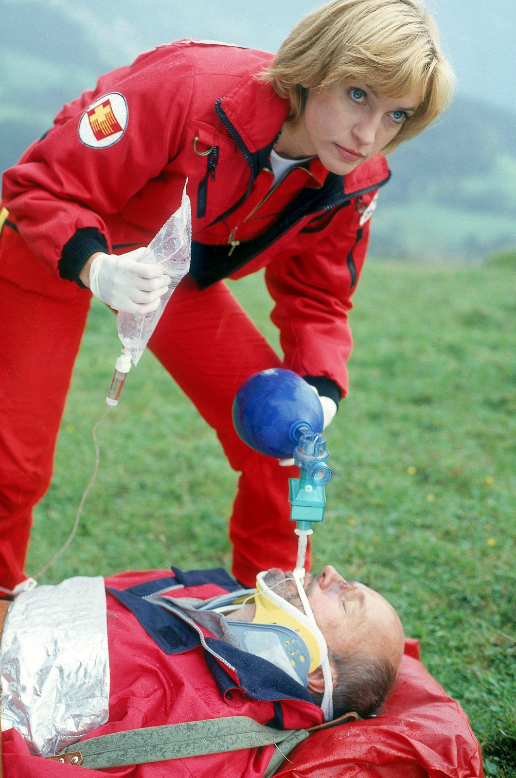 HöhenangstHans Zimmer (Peter Mazzuchelli) wurde von einer kleinen Privatmaschine im Tiefflug so lange gejagt, bis er einen Abhang hinuntergestürzt ist. Verletzt wartete er auf die Rettungsärzte. Dr. Thaler (Roswitha Meyer) versorgt ihn für seinen Transport in die Klinik.Bild: © ORF2