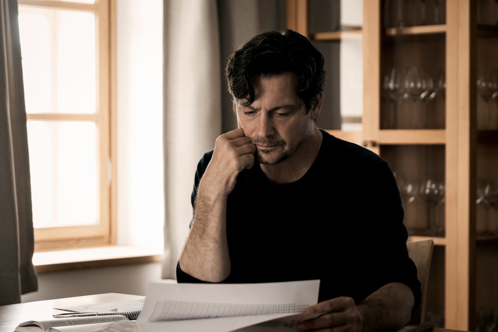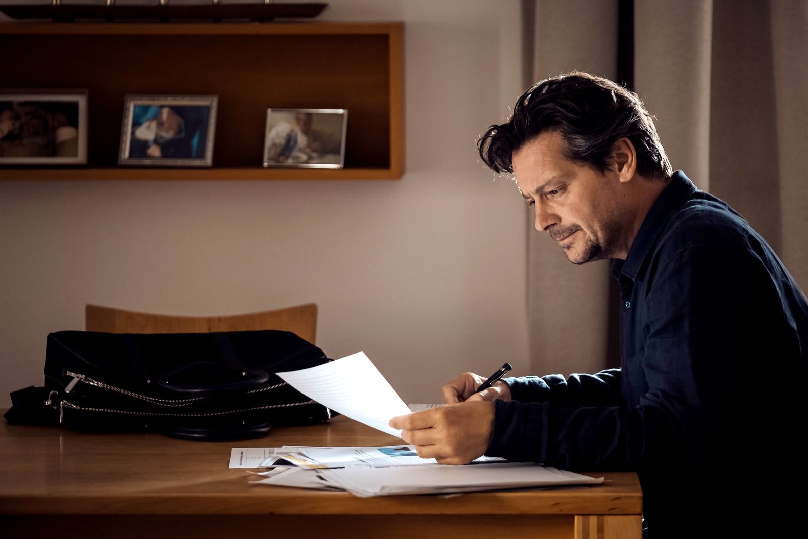 SchlafwandelnThomas Meiberger (Fritz Karll) studiert die Akte der Schlafwandlerin.Bild: © ServusTV / MonaFilm / Olaf R. Benold