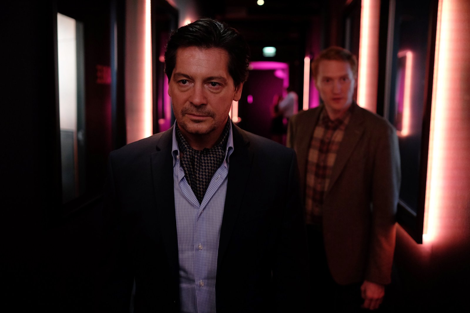 L-R: Thomas Meiberger (Fritz Karl) und Kevin Ganslinger (Franz Josef Danner) suchen im Club nach AntwortenBild: © ServusTV / MonaFilm / Kerstin Stelter