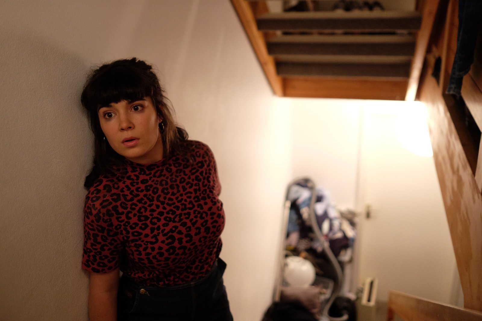 Die StimmenVicky (Flavia Lefèvre) belauscht die Auseinangersetzung von Meiberger und StefanBild: © ServusTV / MonaFilm / Kerstin Stelter