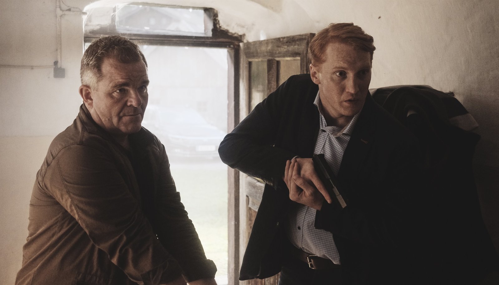 Mörderisches SpielGoliath (Harald Krassnitzer, r.) lauert Meiberger (Fritz Karl) auf.Bild: © Servus TV / Kerstin Stelter / Mona Film Produktion