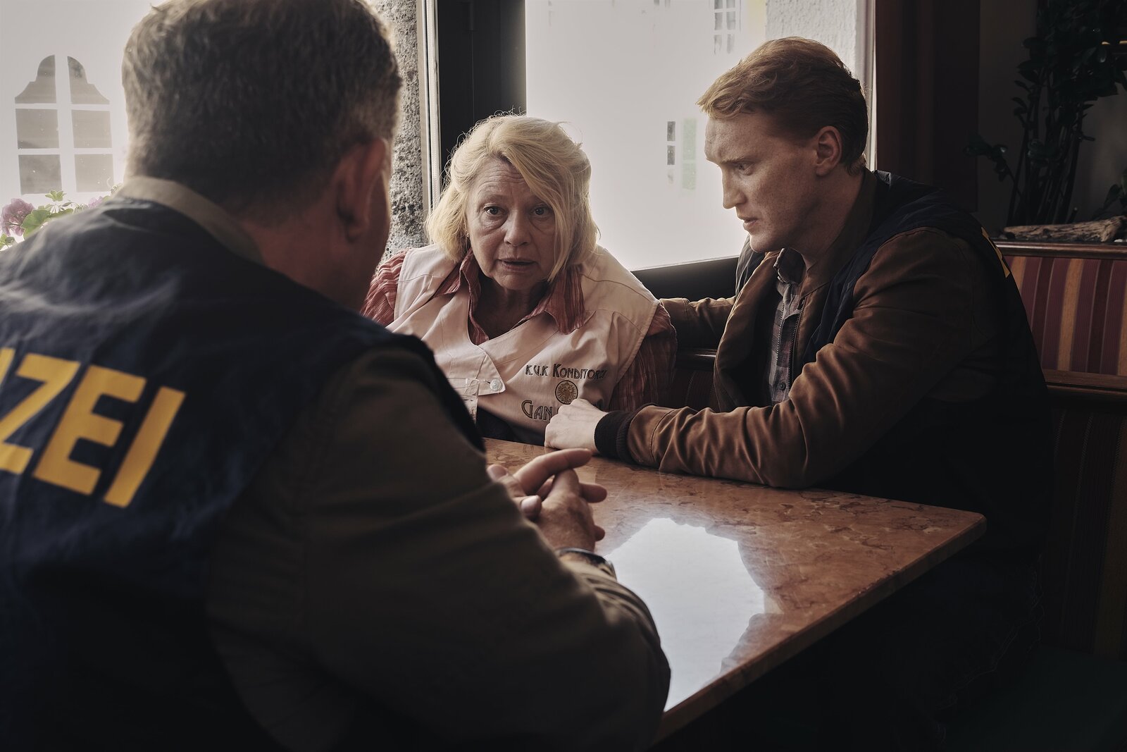 GefangenL-R: Kripo-Chef Nepo Wallner (Cornelius Obonya) und Kevin Ganslinger (Franz Josef Danner).Bild: © ServusTV / MonaFilm