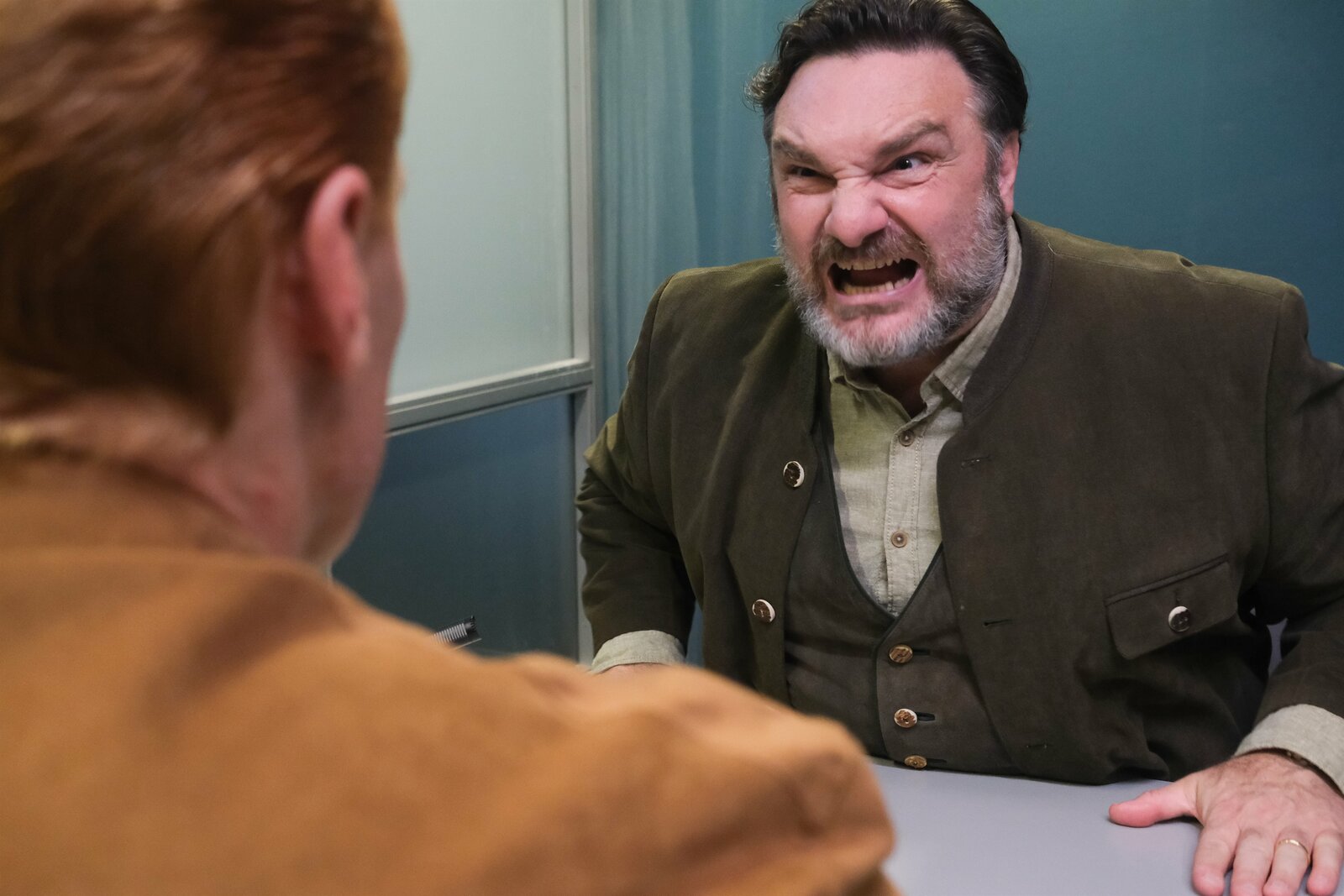 AbsturzThomas Meiberger (Fritz Karl) will von Karo den Namen des "Neuen" wissen.Bild: © ServusTV / MonaFilm / Olaf R. Benold