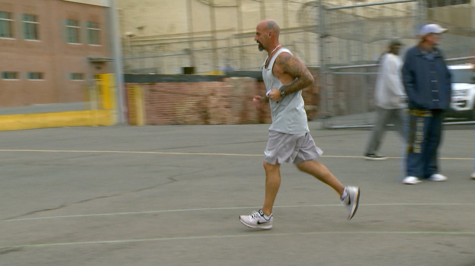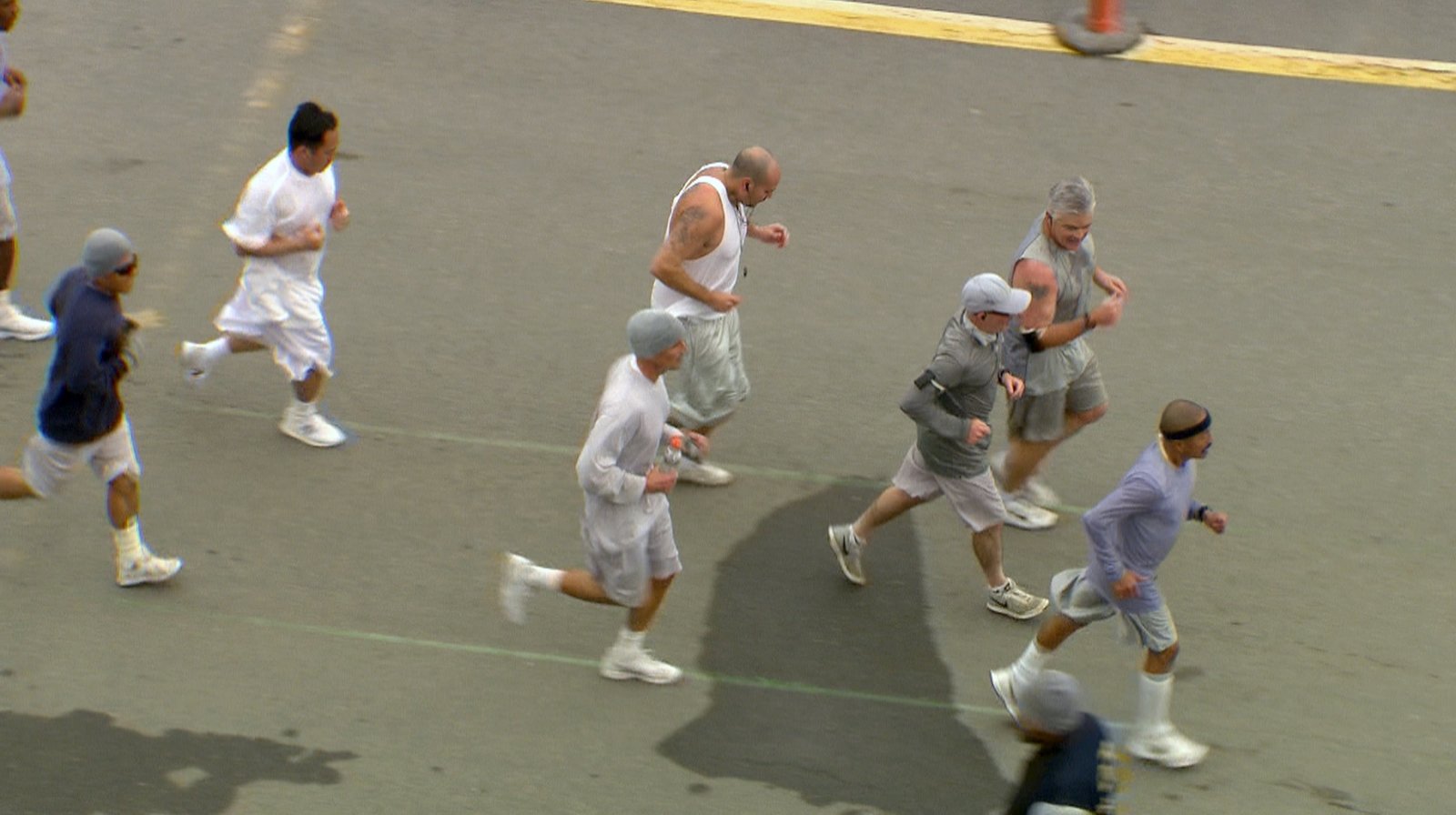 Marathon hinter Mauern - Der Gefängnislauf von San Quentin105 Runden rennen die Gefangenen im Gefängnishof, um die Marathon-Distanz zu absolvieren.Bild: © phoenix/ARD-Studio Washington