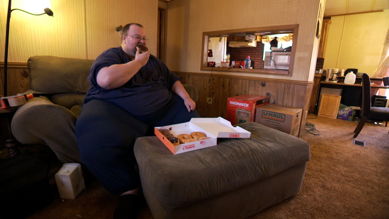 ChadChad eating a donut at home in the living room.Bild: © TLC / Discovery Communications