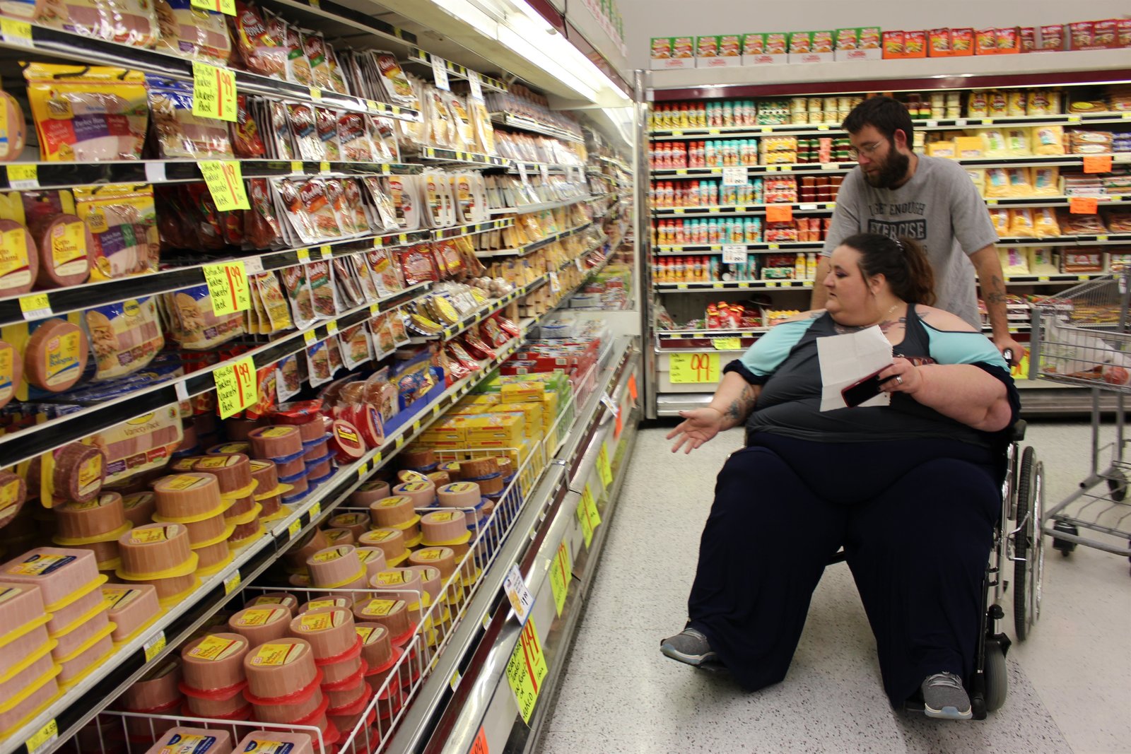 Angela J.Angie gets pushed through grocery store in wheelchair by boyfriendBild: © TLC / Discovery Communications, LLC