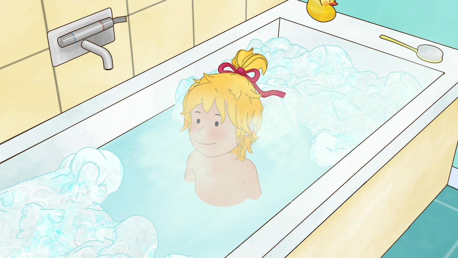 Conni kann nicht einschlafenConni nimmt ein Erkältungsbad.Bild: © ZDF/Henning Windelband/Youngfilms GmbH