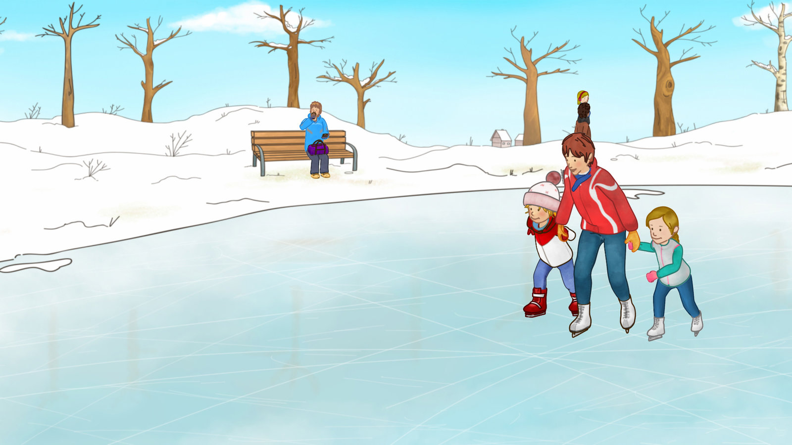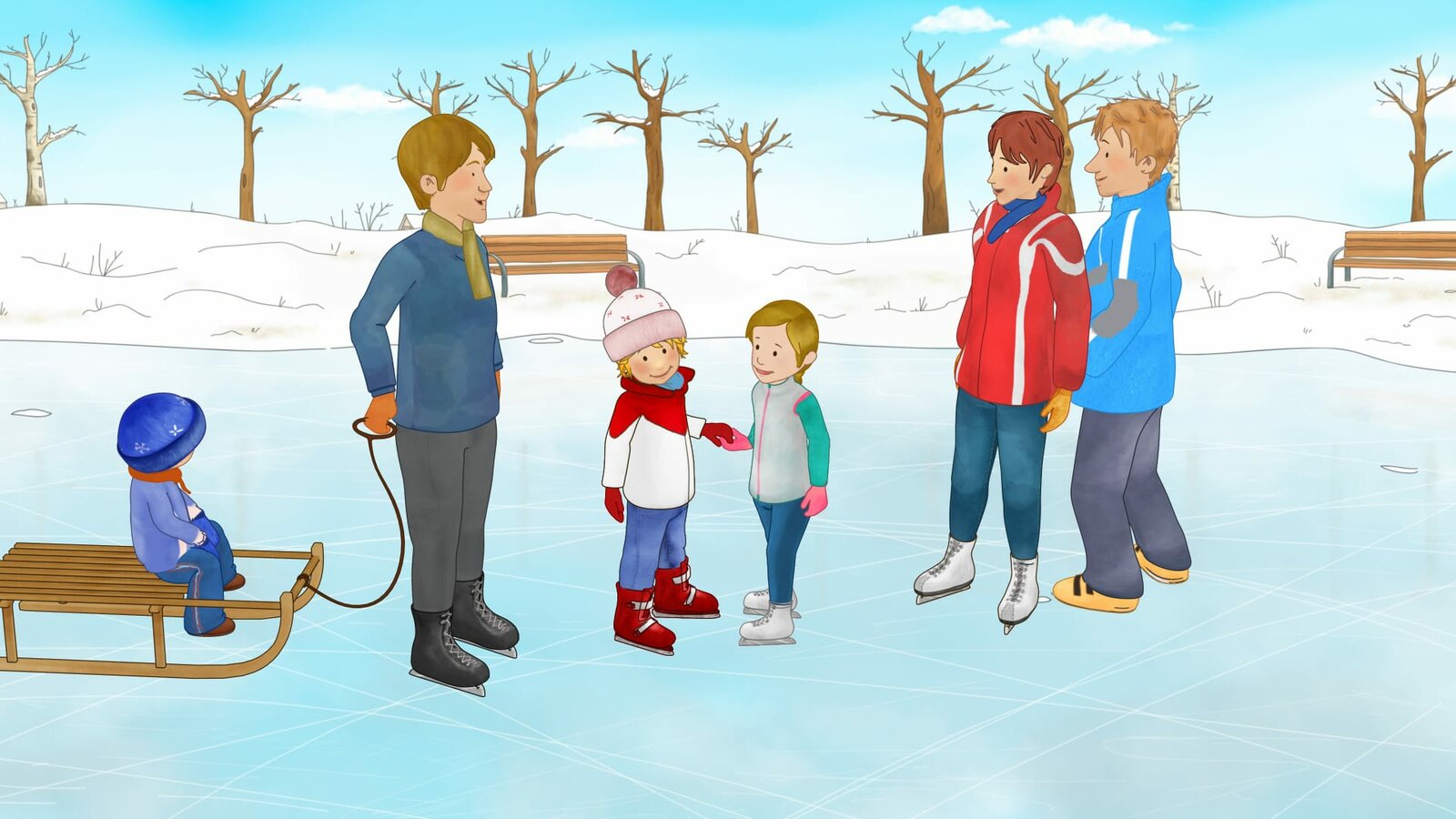 Conni fährt SchlittschuhAuf einem zugefrorenen See übt Conni gemeinsam mit Nina (re.) Schlittschuh fahren.Bild: © ZDF/Henning Windelband/Youngfilms GmbH