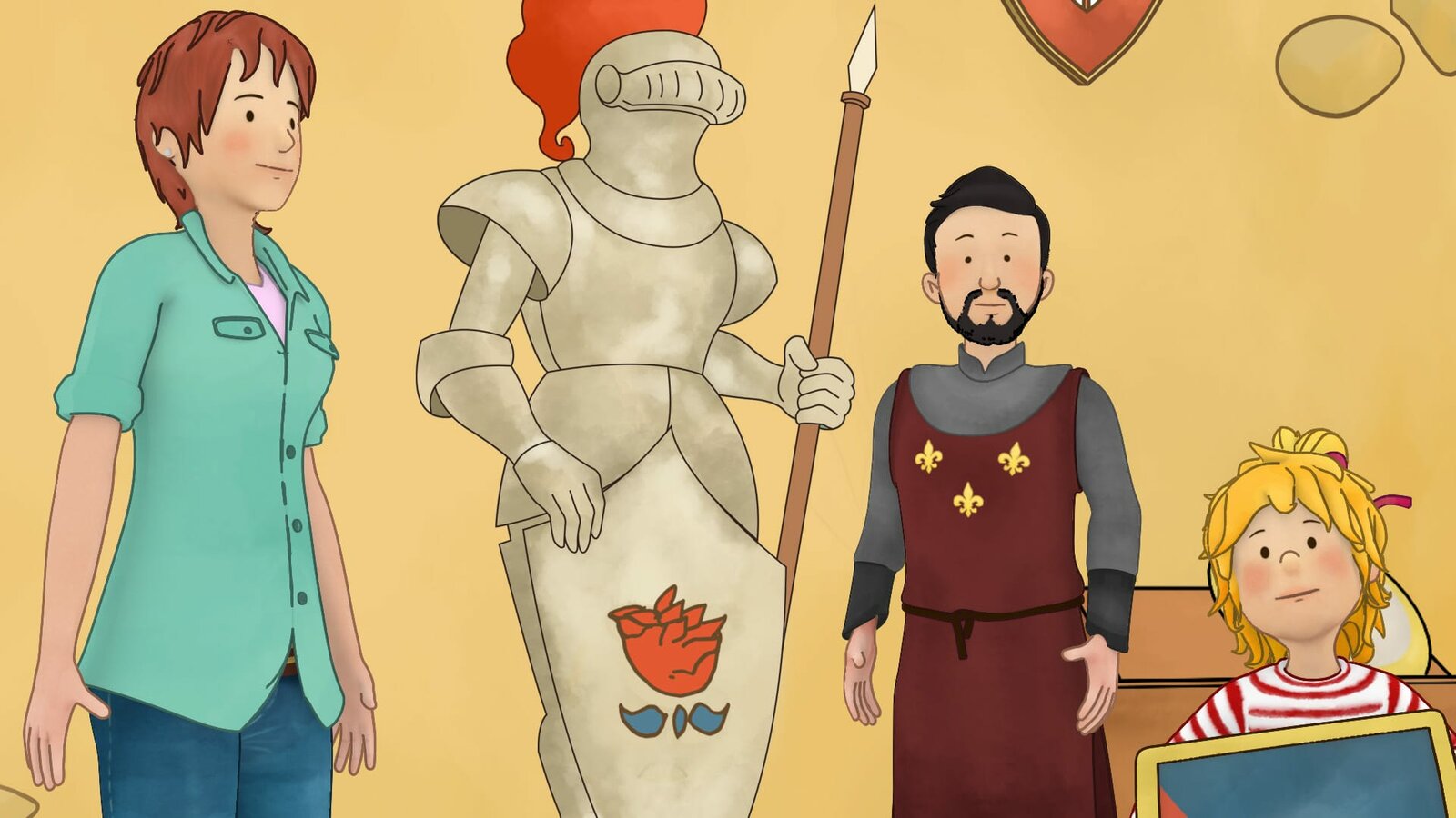 Conni auf der BurgEin Schild ist sehr schwer, erfährt Conni.Bild: © ZDF und (c) Henning Windelband (Youngfilms GmbH)