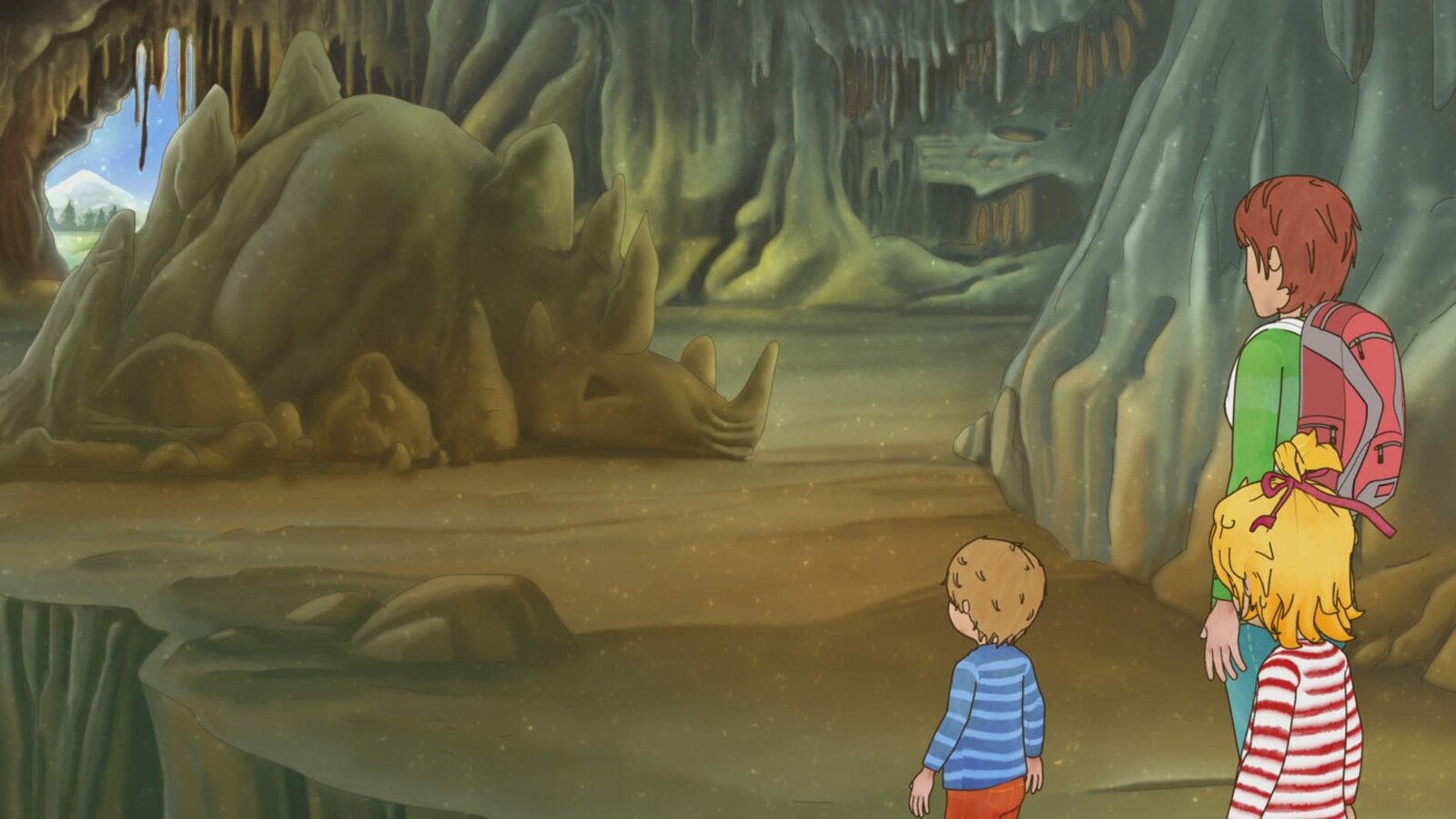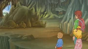 Conni in den BergenJakob hat dank Conni keine Angst mehr in der dunklen Höhle und entdeckt sogar einen schlafenden Steindrachen.Bild: © ZDF/Henning Windelband/Youngfilms GmbH