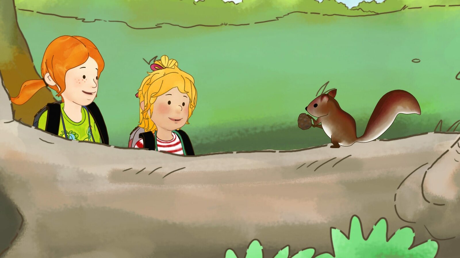 Conni auf WaldsafariConni und Anna entdecken ein Eichhörnchen.Bild: © ZDF/Henning Windelband/Youngfilms GmbH
