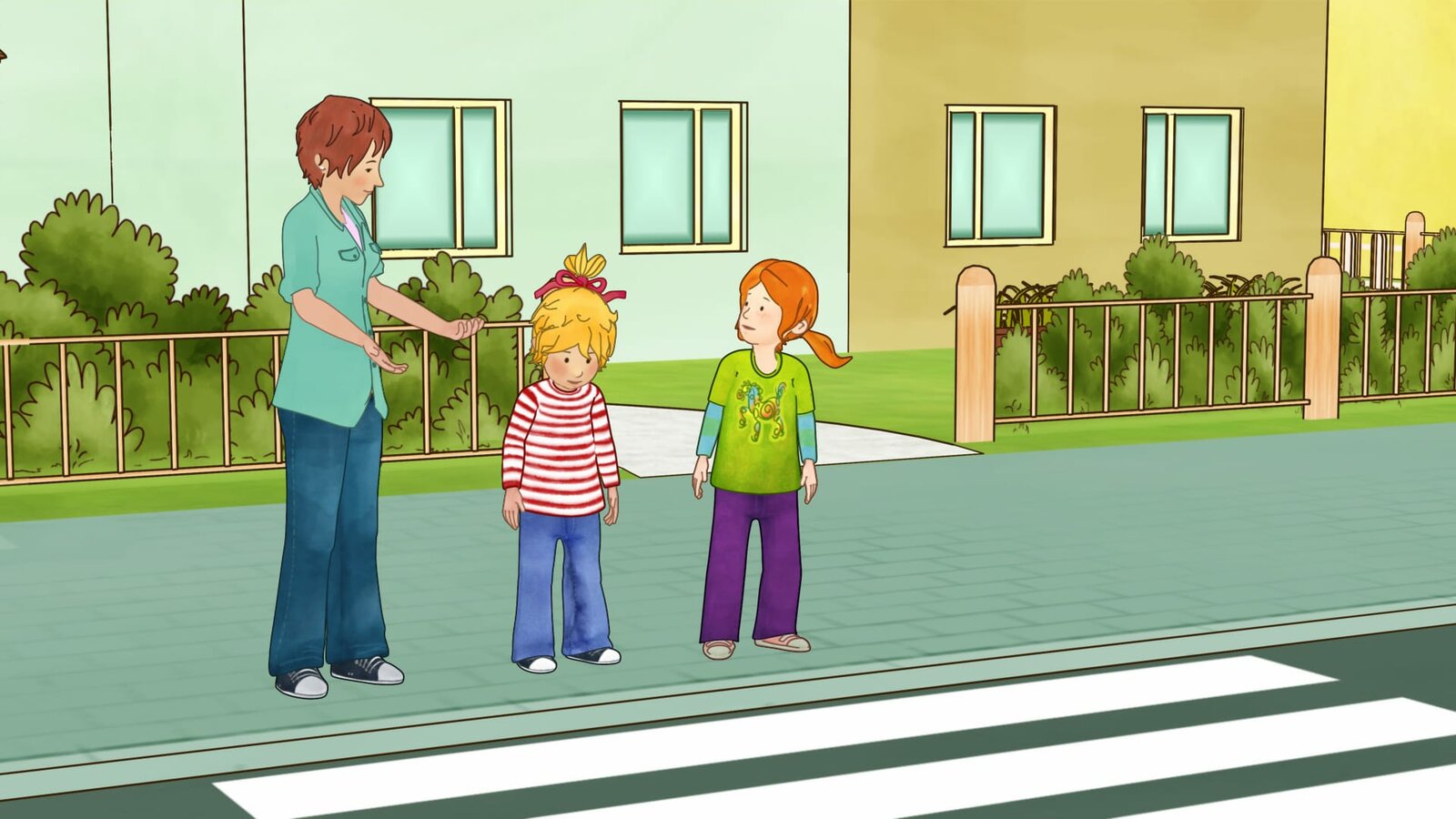 Conni im StraßenverkehrMama unternimmt mit Conni und Anna (re.) einen Spaziergang durch die Stadt.Bild: © ZDF/Henning Windelband/Youngfilms GmbH
