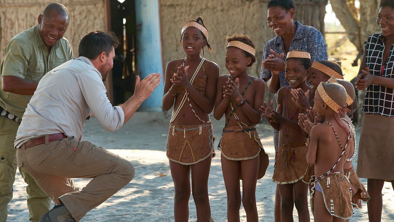 Die erste EtappeLevison dances with children from the village of MababeBild: © Animal Planet / Discovery Communications, LLC