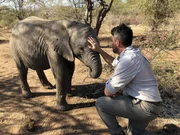 Die erste EtappeLevison Wood with baby elephant at Elephants Without Borders orphanageBild: © Animal Planet / Discovery Communications, LLC