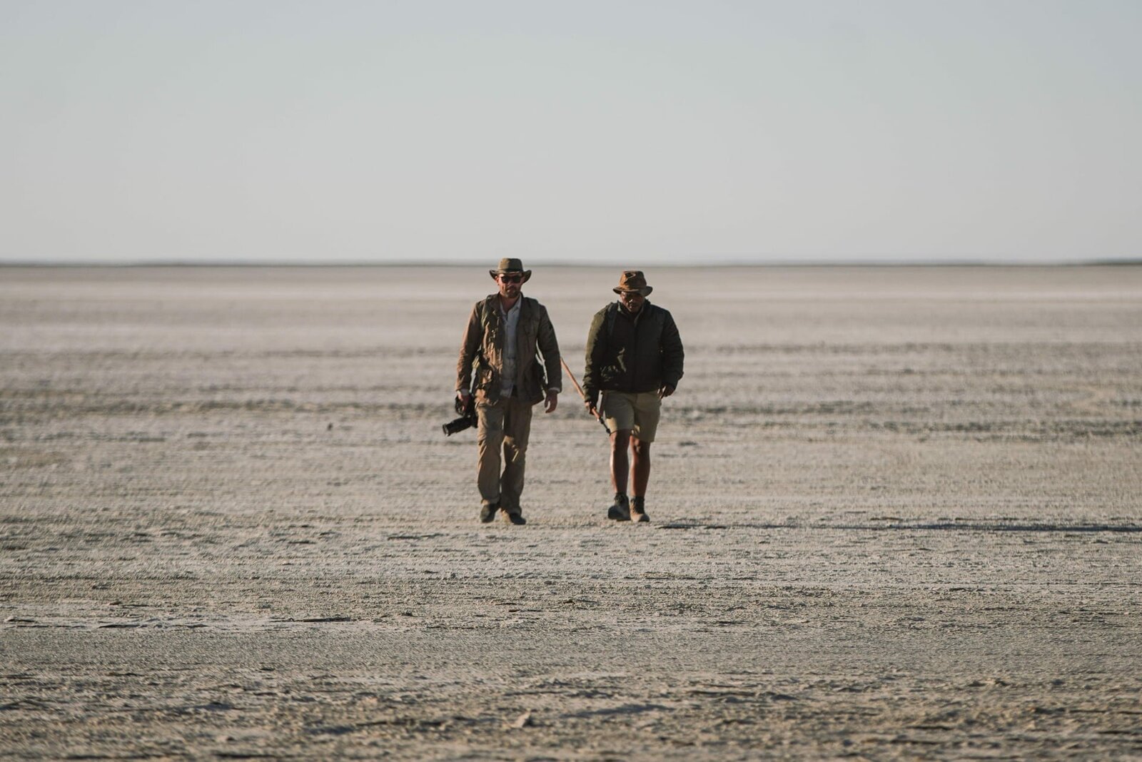 Graue Riesen in AktionLevison and Kane walk across the Makgadikgadi PansBild: © Discovery Communications, LLC