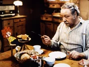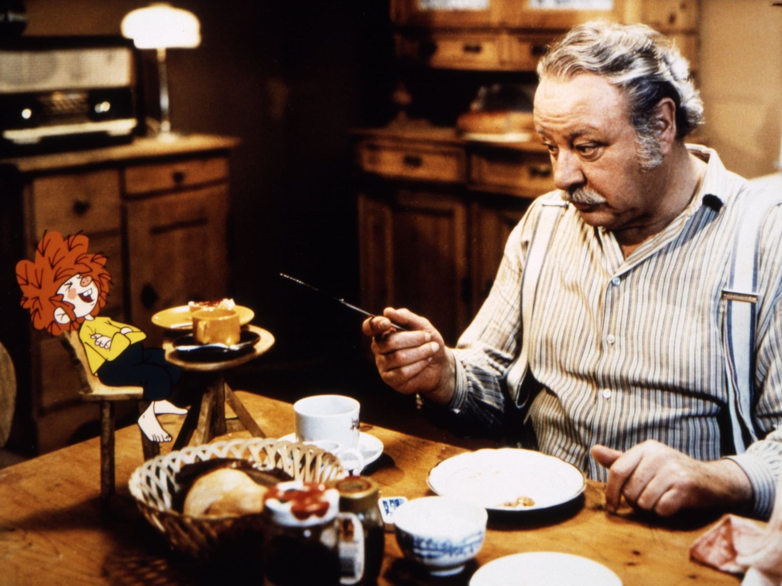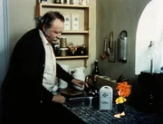 Der rätselhafte HundMeister Eder (Gustl Bayrhammer) und sein Pumuckl beim Frühstück.Bild: © BR/Infafilm/Original-Entwurf "Pumuckl"-Figur: Barbara von Johnson