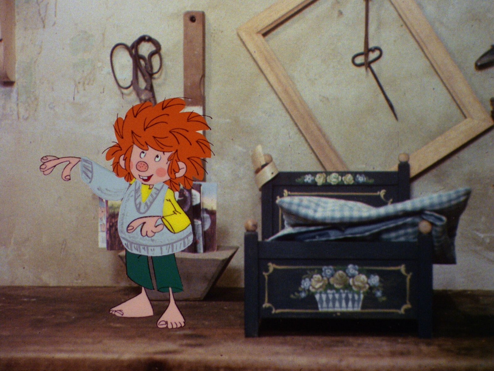 Der WollpulloverPumuckl friert schrecklich, weil es in der Werkstatt so kalt ist. Die nette Frau Schröder strickt ihm einen kleinen Pullover.Bild: © BR/Infafilm GmbH/Original-Entwurf "Pumuckl"-Figur: Barbara von Johnson