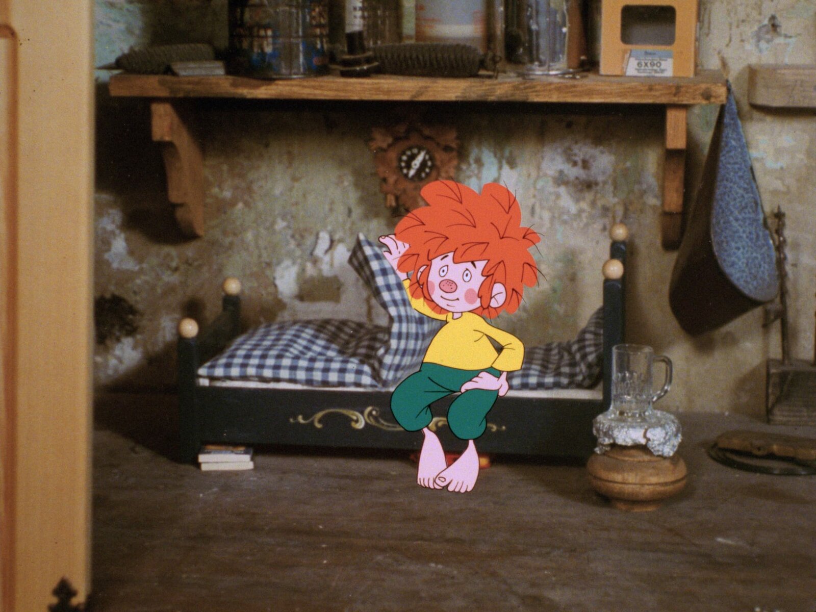 Hilfe, eine Aushilfe!Weil sie den Arm in Gips hat, kann Frau Eichinger bei Meister Eder (Gustl Bayrhammer) nicht putzen. Alles halb so schlimm, denn sie sorgt für eine Vertretung. Pumuckl hofft, dass die "Neue" nicht so gründlich ist wie Frau Eichinger. Aber da hat er sich schwer getäuscht. Der wird er's zeigen und ihr entsprechend Angst und Respekt einjagen.Bild: © BR/Infafilm GmbH/Original-Entwurf "Pumuckl"-Figur: Barbara von Johnson