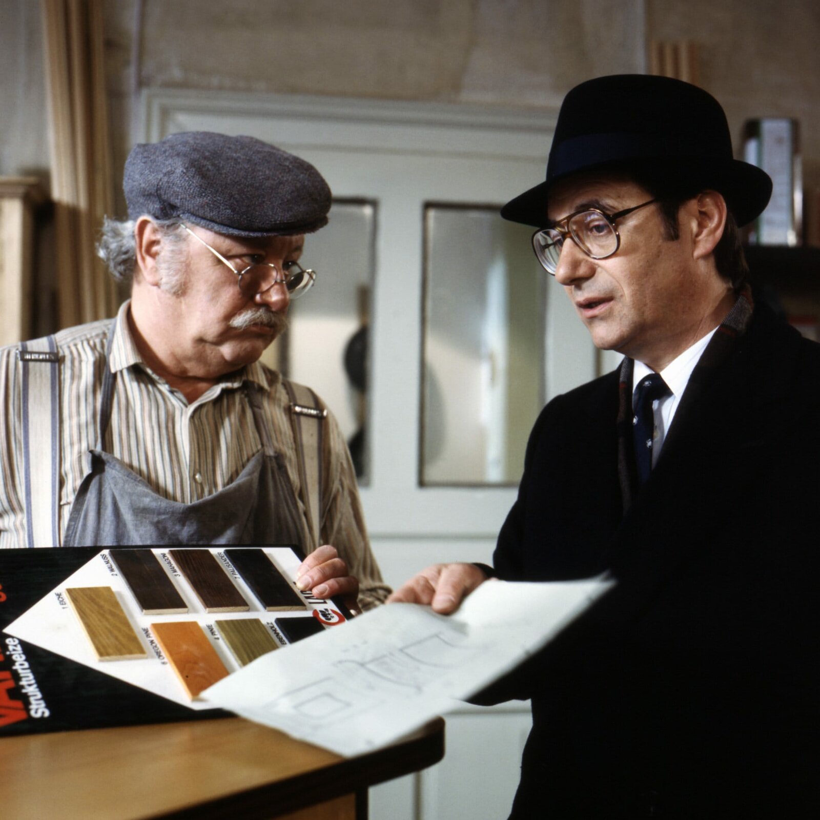 Ein schwieriger KundeARD/BR MEISTER EDER UND SEIN PUMUCKL, FOLGE 40, "Ein schwieriger Kunde", am Sonntag (30.05.10) um 08:00 Uhr im ERSTEN. Von links: Meister Eder (Gustl Bayrhammer) und Herr Schladerer (Wilfried Klaus).Bild: © MDR/BR/Infafilm