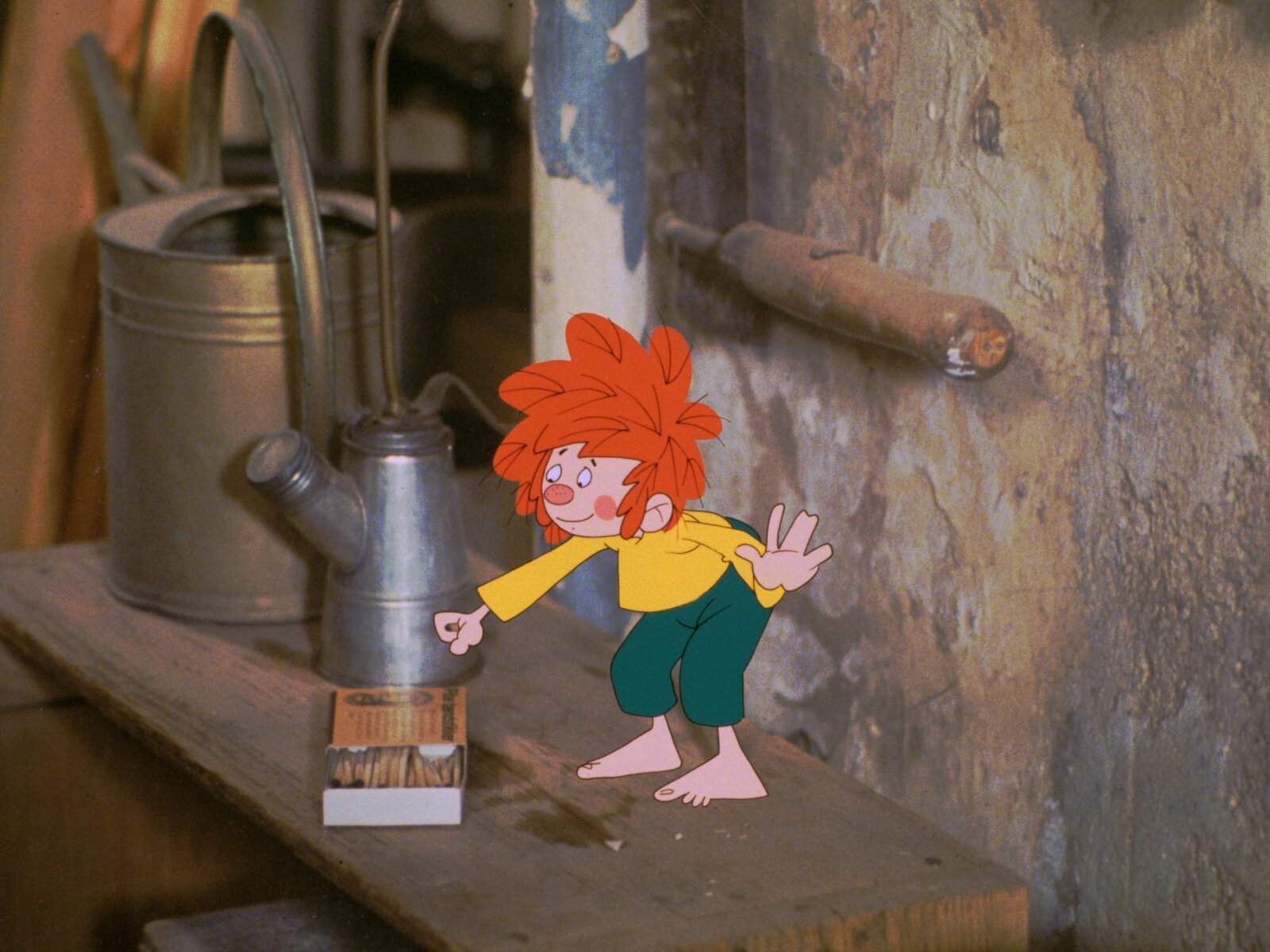 Das Spiel mit dem FeuerUngehorsam muss bestraft werden. Pumuckl bedrängt Meister Eder, ihm Streichhölzer zum Spielen zu geben, denn das Feuer im Werkstattofen hat ihn fasziniert. Eder erklärt ihm, welche Folgen Unachtsamkeit im Umgang mit Streichhölzern haben kann. Als Eder zu einem Kunden gerufen wird, entdeckt Pumuckl in der Küche Zünd- hölzer. Ein verhängnisvoller Fund...Bild: © BR/Infafilm GmbH/Original-Entwurf "Pumuckl"-Figur: Barbara von Johnson