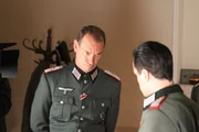 Robert Bernardis, ein vergessener HeldGefangennahme im Bendlerblock, Pridun (li., Christian Dolezal), rechts Bernardis (Julian Sharp).Bild: © ORF2