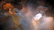 Tod im Morgengrauen - Das letzte Schlachtschiff des KaisersDie Maschinenmannschaft im Kesselraum.Bild: © ORF III