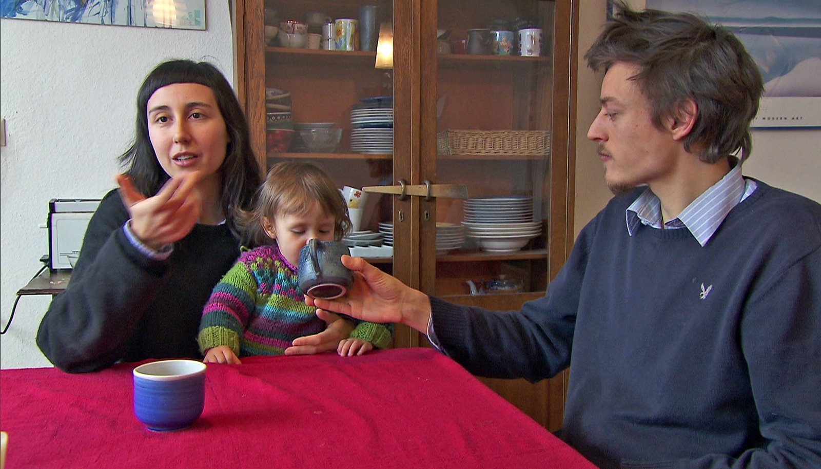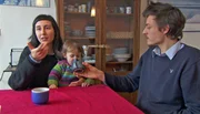 SWR Fernsehen MENSCHEN UNTER UNS, "Ohne Geld leben! Eine junge Familie auf neuen Wegen", am Sonntag (23.11.14) um 08:15 Uhr. v.li.: Nieves, Alma Lucia und Raphael - eine Familie im Geldstreik. Ihr Anliegen ist es, auf die Verschwendung von Lebensmitteln und die Wegwerfgesellschaft aufmerksam zu machen.Bild: © WDR/SWR