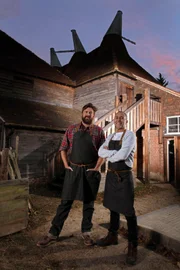 Der SüdostenAuf der letzten Recherchereise von Michel Roux, hier mit Freddy Bird (l.)kulinarischer Reise durch Großbritannien besucht er eine Betonfestung mitten im Meer und lässt sich von anderen Restaurants inspirieren.Bild: © RTL/ (c) C. Boomerang