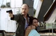 FamilienbandeEs gelingt, die ausgeklügelte Befreiungsaktion von Miroslav Sokol (Florian Lukas, l.) zu verhindern. Nina (Elena Uhlig, r.) versucht verzweifelt, dem Erpresser den Aufenthaltsort ihres Vaters zu entlocken.Bild: © SAT.1 / Christian A. Rieger Eigenproduktionsbild frei