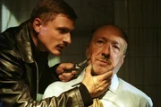 FamilienbandeNinas Vater, Oberstaatsanwalt Dr. Albert Metz (Miguel Herz-Kestranek, r.), ist von Miroslav Sokol (Florian Lukas, l.) entführt worden. Der will seinen schwerkriminellen, inhaftierten Vater freipressen.Bild: © SAT.1 / Christian A. Rieger Eigenproduktionsbild frei