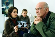 FamilienbandeEs bleibt nicht mehr viel Zeit, Ninas Vater zu retten: Leo (Henning Baum, l.), Nina (Elena Uhlig, M.) und Zock (Manfred Lehmann, r.) versuchen herauszufinden, wo er gefangen gehalten wird.Bild: © SAT.1 / Christian A. Rieger Eigenproduktionsbild frei