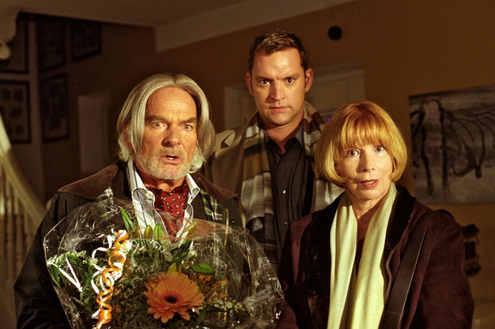 50 Stunden EiszeitFlorian (Christian Kahrmann, M.) möchte Nina nun endlich seinen Eltern (Claus Dieter Clausnitzer, l. und Ursela Monn, r.) vorstellen. Die trauen ihren Augen nicht, haben sie Nina doch bereits kennen gelernt ...Bild: © ATV2