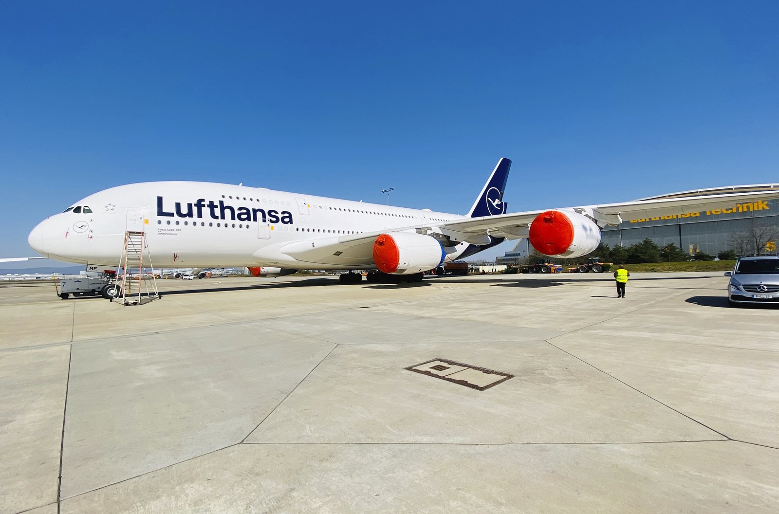 Einmal Karibik und zurück - Flugbegleiterin Lara fliegt wieder!Stillgelegter A380 am Frankfurter Flughafen: Die Corona-Krise hat den Frankfurter Flughafen voll erwischt.Bild: © HR