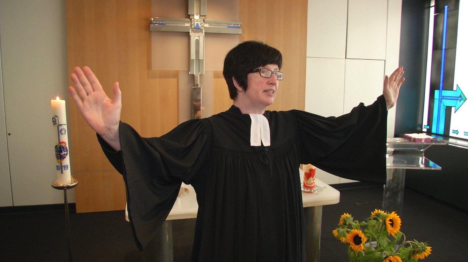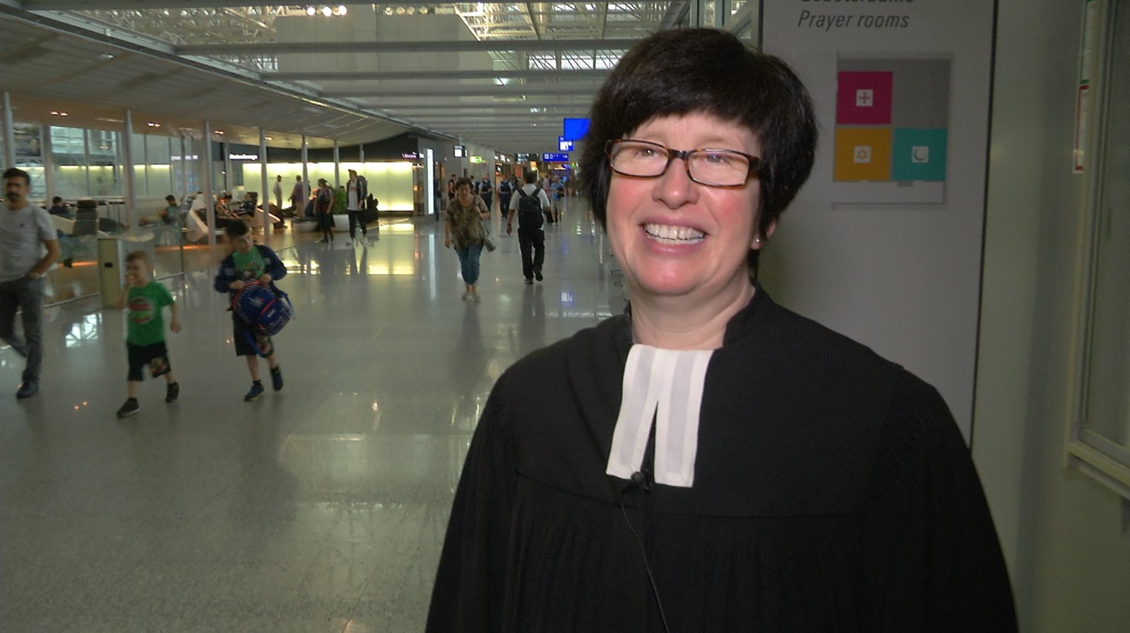 Taufe, Trauung, Trauer - Unterwegs mit der FlughafenpfarrerinFlughafenpfarrerin Bettina Klünemann ist für zwei Kapellen mit verantwortlich.Bild: © HR